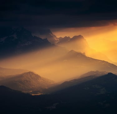 The fog parts at dawn — golden light floods the ridge, revealing what endures